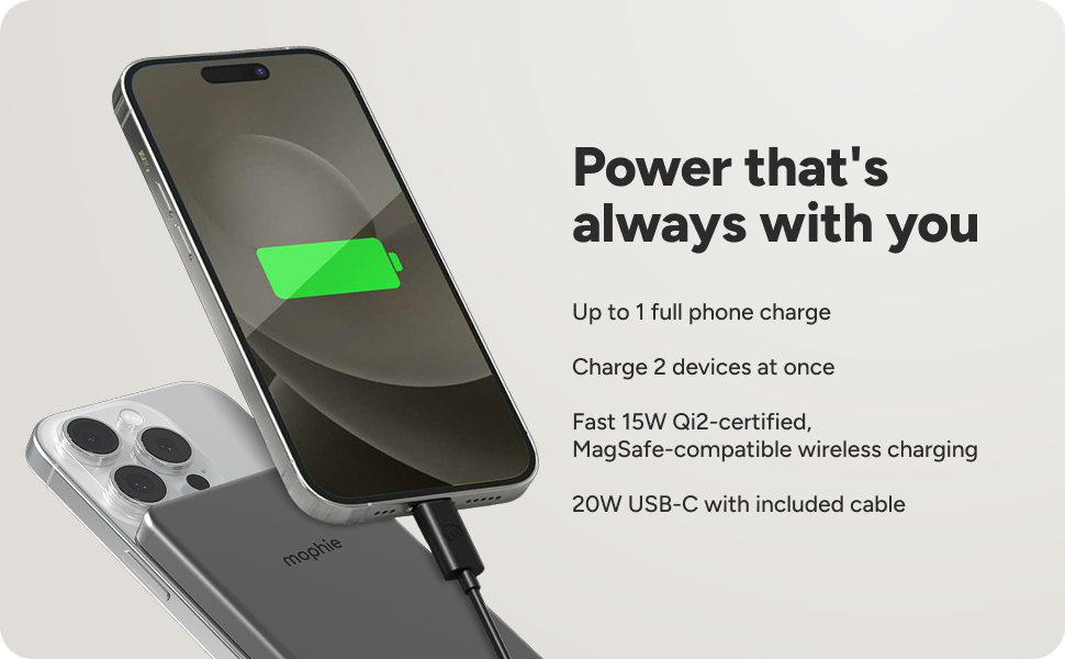 • Up to 1 Phone Charge: Powerstation Wireless Slim offers enough power for one full phone charge.1