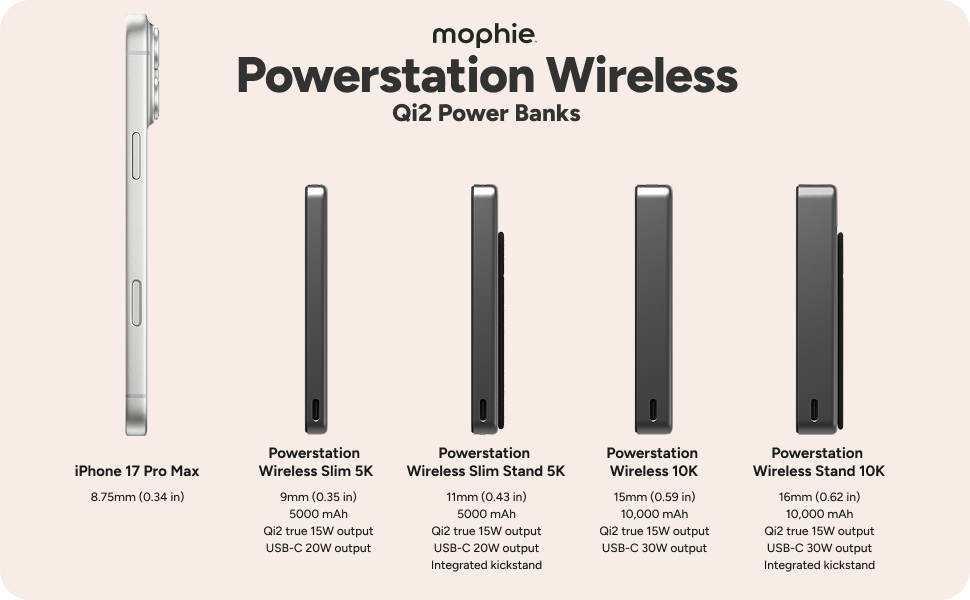 Stay powered throughout your day with the ultra-slim Powerstation Wireless Slim. With a 5,000mAh internal battery, Qi2-certified wireless charging, and fast USB-C PD output, this compact power bank delivers reliable performance in a sleek, sustainable design. It’s airline-approved and backed by a 2-year warranty for peace of mind wherever you go. Also available with a stand to go hands-free.
