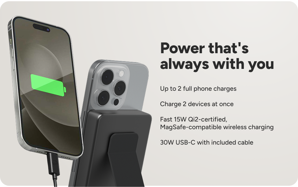 • Charges on Contact: Power begins the moment your phone snaps into place on the Qi2 surface.